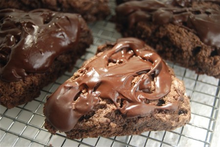 You'll never notice the whole wheat flour in these scones; it disappears in the chocolate. However, feel free to substitute an equal amount of all-purpose flour for the whole wheat, if you like.