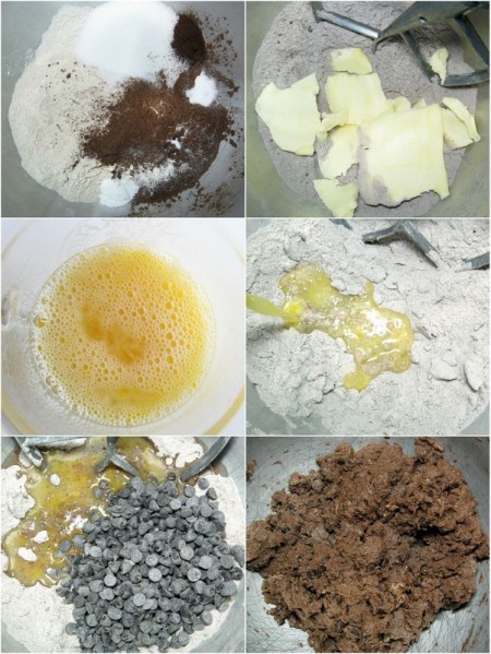Add to the flour/butter mixture, along with 1 1/2 cups (170g) semisweet or bittersweet chocolate chips.