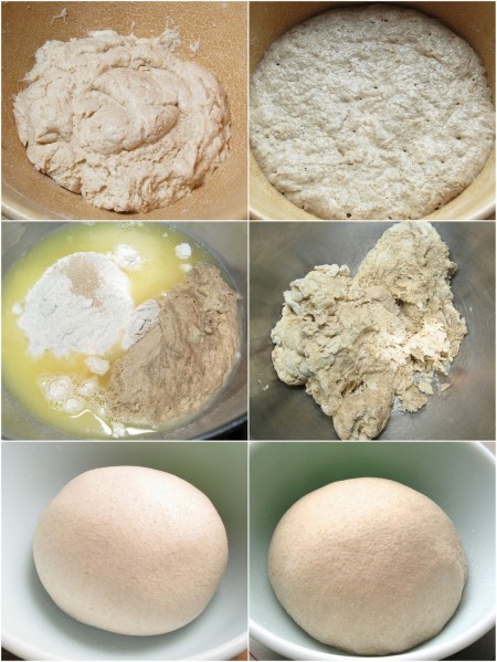 Next day, you'll see that the starter has expanded and become bubbly. In a large mixing bowl or the bucket of your bread machine, combine this risen starter with the following ingredients: