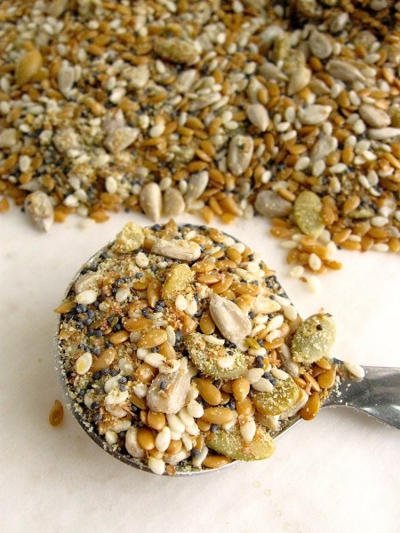 If you don’t have a scale, simply mix equal parts, by volume, of the first five seeds; and about half as much of each of the final three ingredients. Store in an airtight container, preferably in the refrigerator.