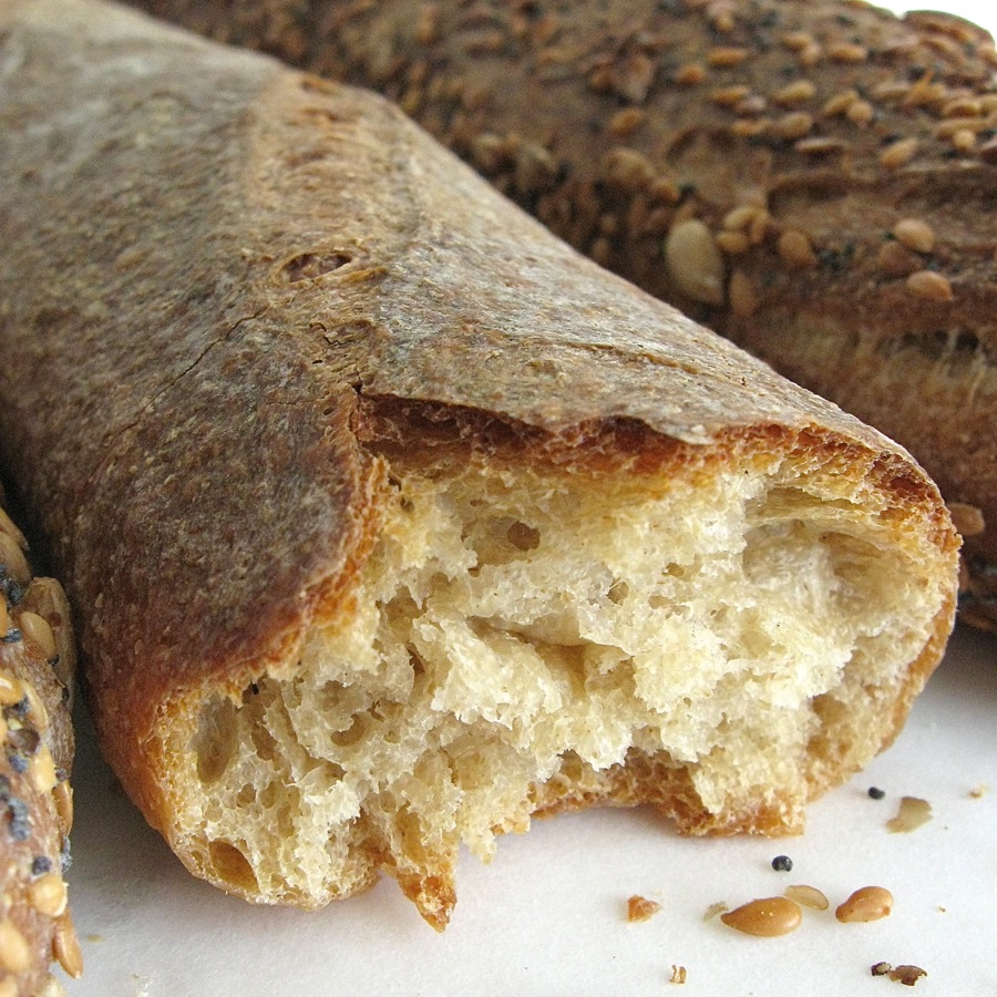 Since a baguette is nothing more than flour, water, salt, and yeast, the two ingredients that will do more to ensure your whole-grain baguette success than any other are whole wheat flour, and bread flour.