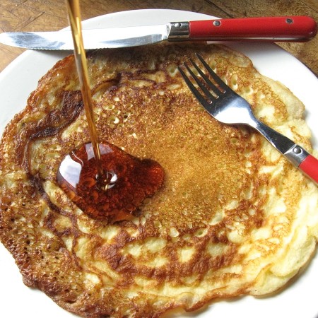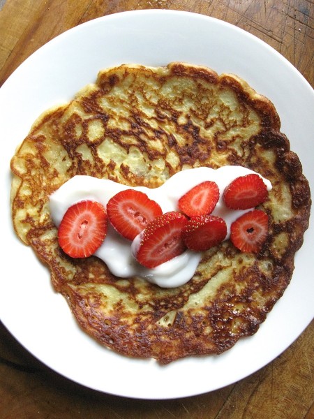 Transfer the pancake to a plate (or lightly greased baking sheet, if you want to keep the pancake warm in the oven while you cook the remainder). Repeat with the remaining batter; this amount of batter will make 4 large pancakes.