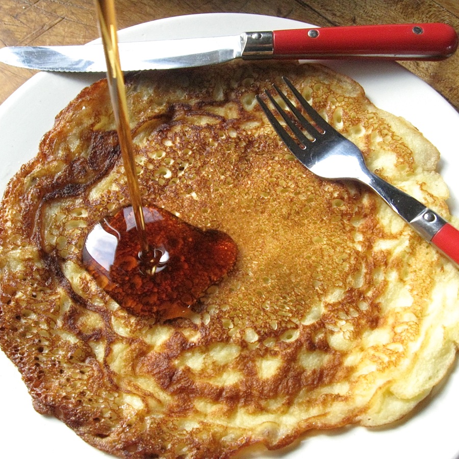 So, between Pam's quote; the review descriptions on Yelp and Urbanspoon; and the photos on Google, I pieced together a recipe that, if not absolutely true to the original, produces pancakes that are truly excellent: crisp edges; soft, tender centers; and marvelous buttery flavor.