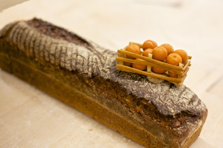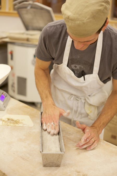 Here Martin is placing dough in a loaf pan. This bread is based on a German whole rye bread, dense and hearty. Challenge #3 is to add flavor and complexity to make this take on a European staple one of a kind. Martin achieved this with the addition of orange and spices, a perfect accompaniment to a cheese plate (or just toasted and buttered).