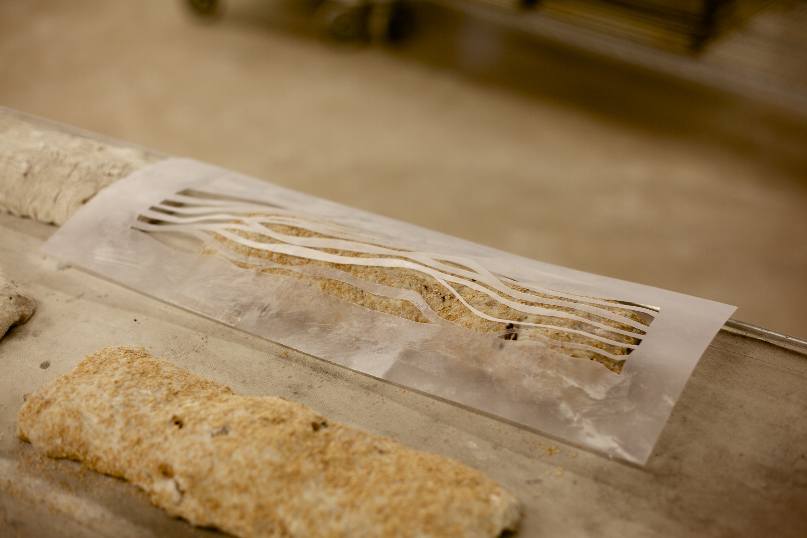 To take it over the top visually, Martin designed a stencil to sift flour atop each loaf for a beautiful presentation. Another winner! Is your mouth watering? A version of this bread is available in our bakery on Thursdays.