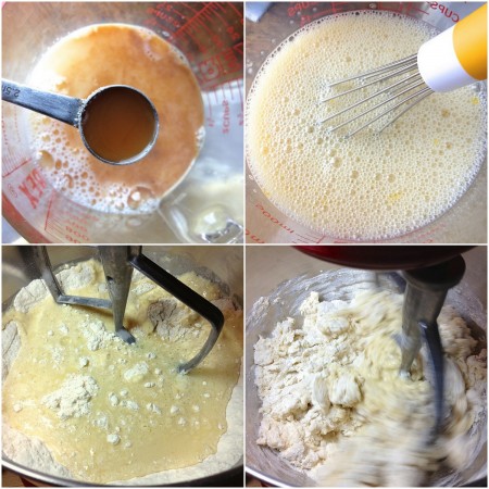 Mix and knead to make a cohesive, but quite sticky dough. This is easily done in a bread machine set on the dough cycle; or in a stand mixer – about 7 minutes on medium speed should be sufficient.