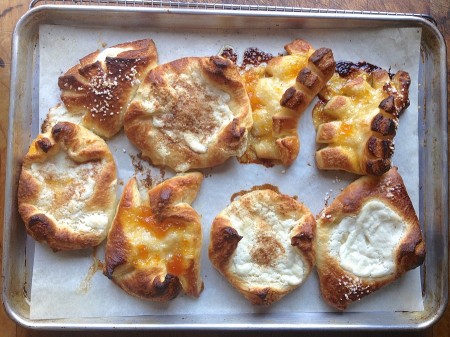Either of these filling suggestions makes enough to fill all the pastries; so if you want to mix and match, make a half-recipe of the cheese filling, and use only half the amount of fruit filling called for.
