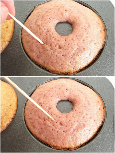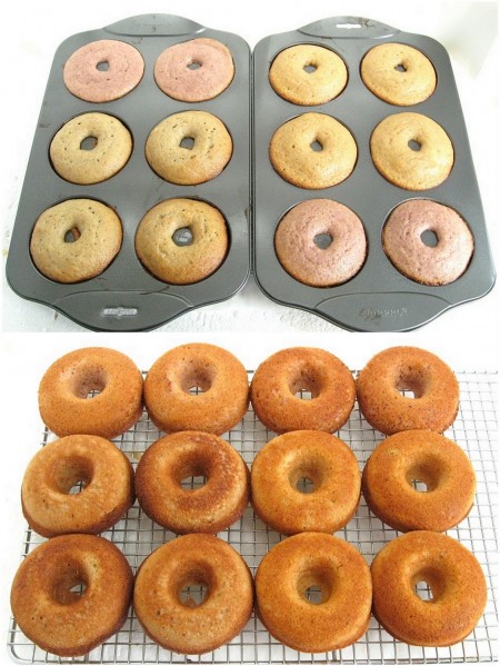 You like banana cake, right? Apple cake? How about strawberry cake? Start with one plain cake batter, then add fruit purée to make the flavored doughnuts of your choice.