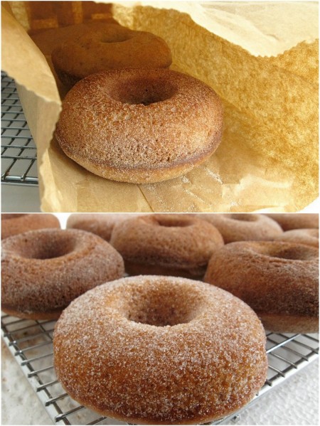 Which means you can make coconut doughnuts. Chocolate fudge doughnuts. Pumpkin doughnuts (one of our most popular recipes). Cider doughnuts. Most any cake batter – yellow, gingerbread, lemon, even cherry – can be poured into a doughnut pan, and baked up to look like a doughnut.