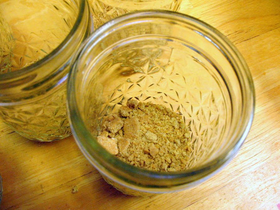 In a small bowl, mix 1 cup (142g) graham cracker crumbs with 1 tablespoon sugar. Place 2 tablespoons sweetened crumbs in each of seven 1/2-pint Mason jars. Press down lightly.