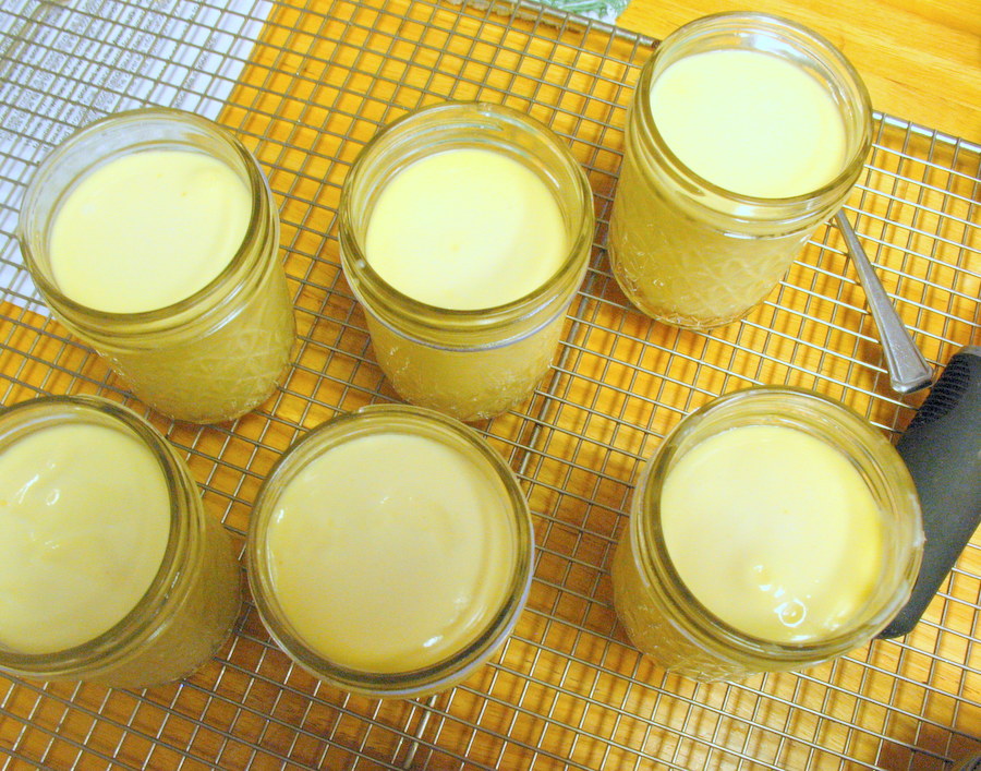 Fill each jar 3/4 full with your cheesecake filling. I found pouring the filling from a pitcher with a spout to be a great help.
