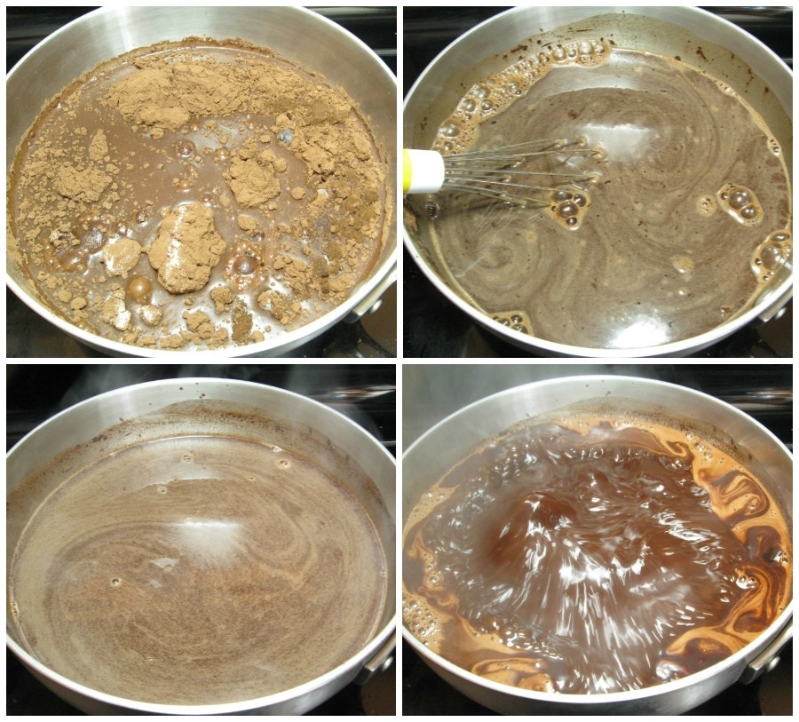 Bring the mixture to a boil and cook, stirring frequently, until the chips and sugar are dissolved.