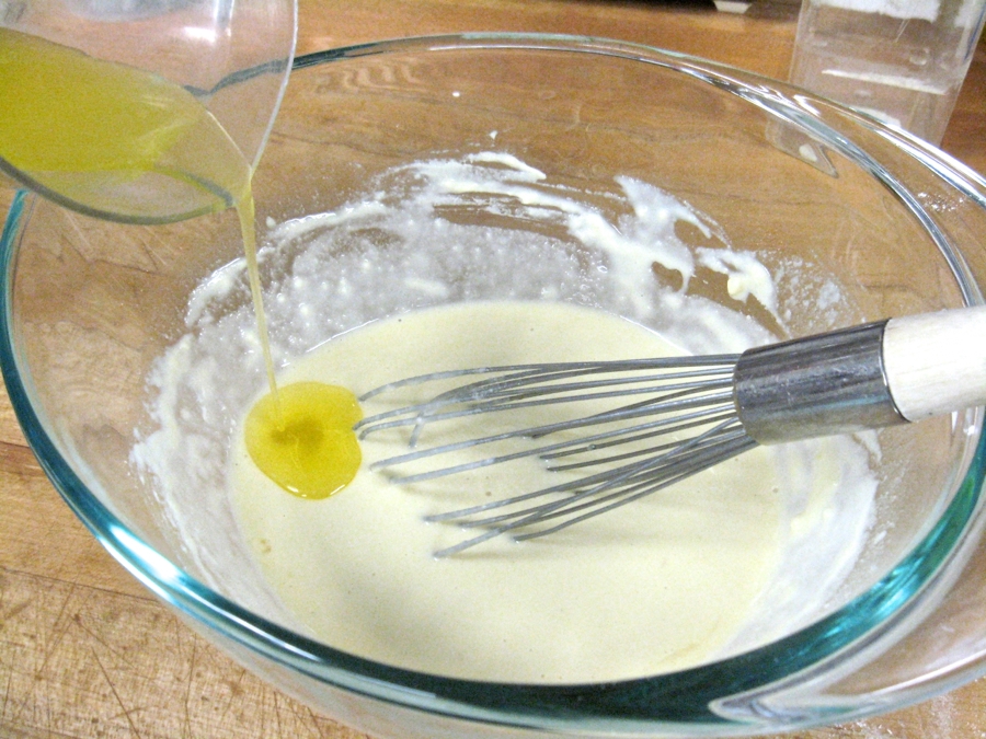 Stir everything together, then add the rest of the liquid ingredients and combine thoroughly. Don't fret over small lumps, they won't stick around for long!