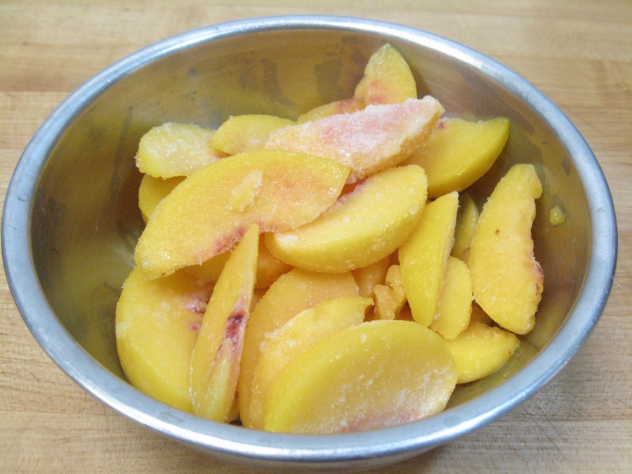 In order to have this recipe and blog ready for you for the peach harvest, I had to begin working on it in the late weeks of winter and early spring – so frozen peaches it was!