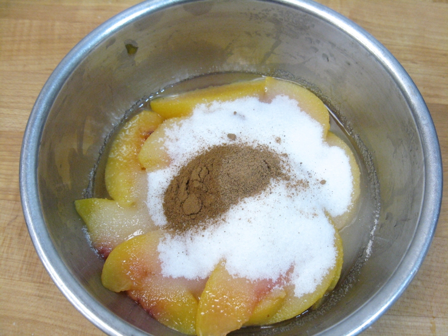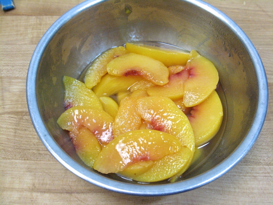 To prepare the peaches, toss them with the following: