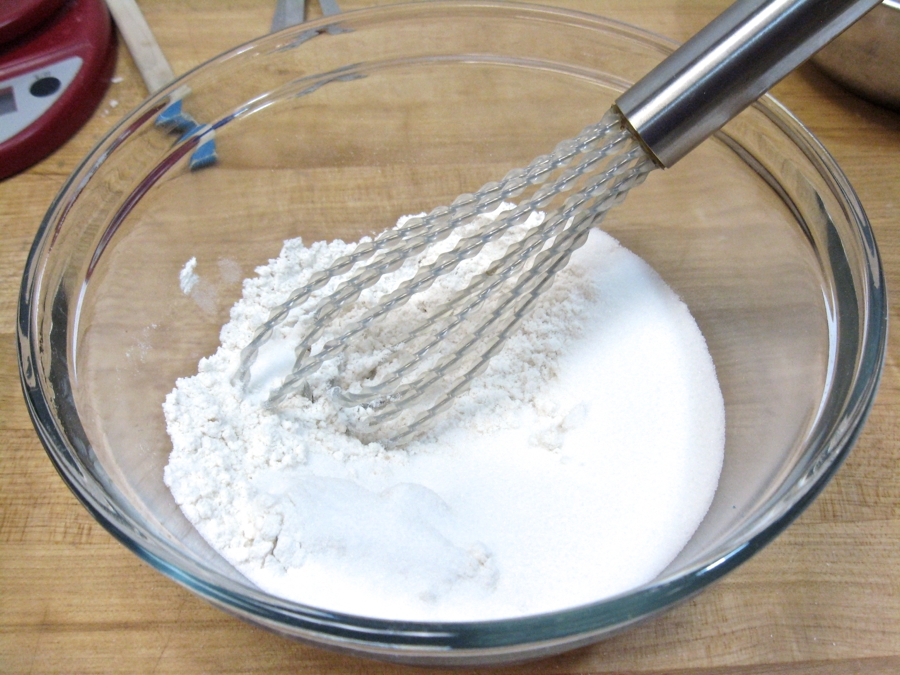 To make the batter, combine 1 cup (120g) Gluten-Free All-Purpose Biscuit & Baking Mix with 1/2 cup (99g) sugar.