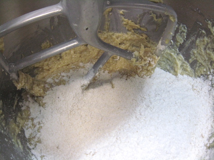 You'll only be altering the butter and water amounts from the directions on the back of the mix box. Otherwise, the basic method is the same. Pour half the cookie mix into the bowl of your stand mixer and beat in 10 tablespoons (142g) butter.
