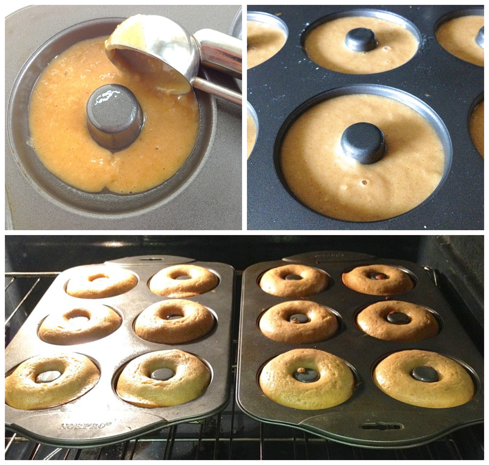Lightly grease two standard doughnut pans. If you don't have doughnut pans, you can bake these in a standard muffin tin; they just won't be doughnuts.