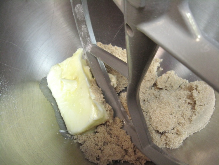 Beat 6 tablespoons (85g) softened butter and 1/2 cup (106g) brown sugar in the bowl of your stand mixer on medium speed.