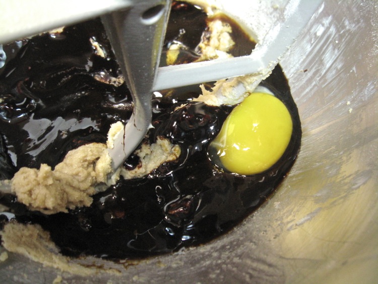 Add 1 large egg, 1/2 cup (170g) molasses and 1 teaspoon vanilla, and beat briefly on medium-low speed. You don't want to stir too much air into the cookies or they'll become puffy and lose their shape in the oven.