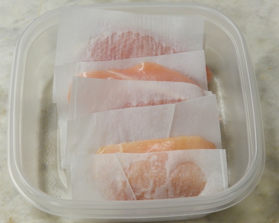 15. Cut squares of parchment to layer between chicken breasts or hamburger patties before freezing.
