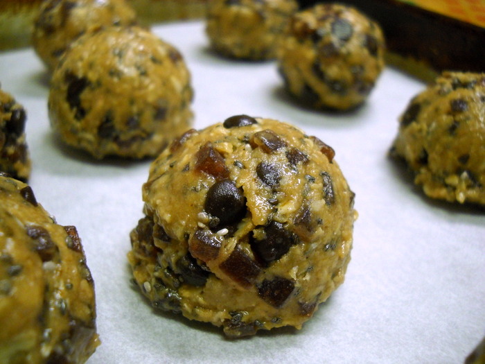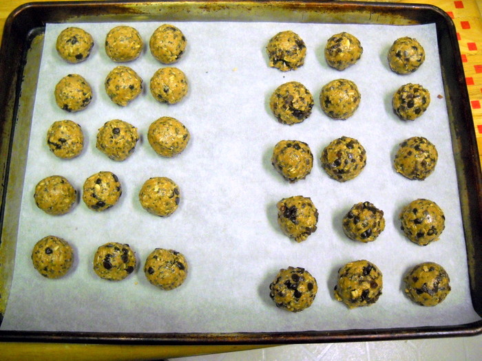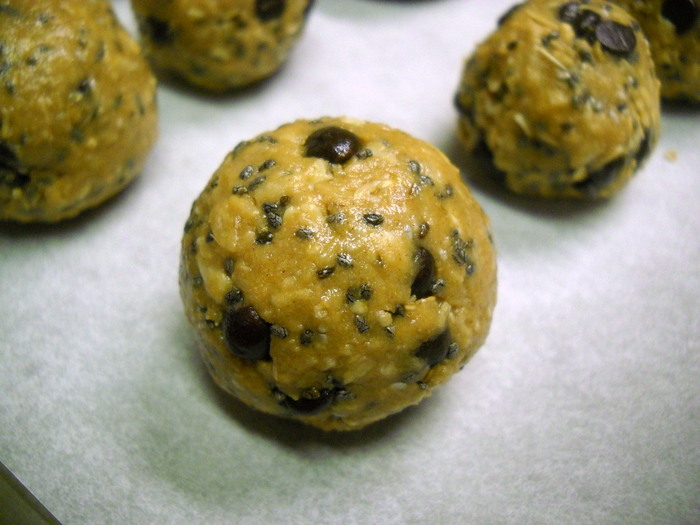 Use your hands, two spoons, or a tablespoon-sized cookie scoop to make ping-pong sized balls. You can roll them between your palms to smooth them out, or leave them rustic. No judgy pants here.