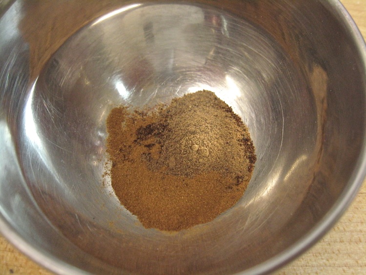 Add 1/8 teaspoon cloves, 1/8 teaspoon nutmeg, and 1/2 teaspoon cinnamon, whisking everything together.