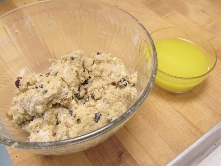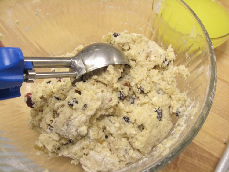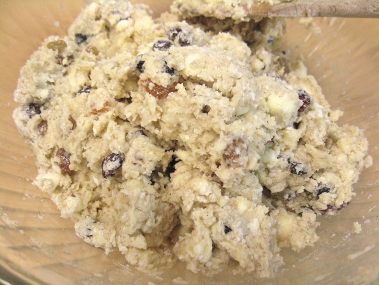 Stir in 1/4 cup (35g) currants (you can also use dark raisins), and 1/2 cup (71g) dried fruit.