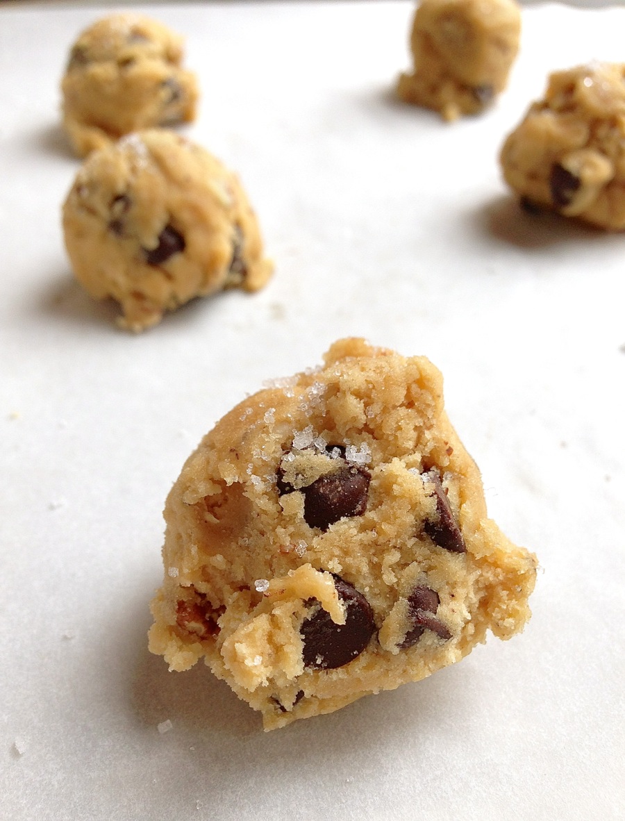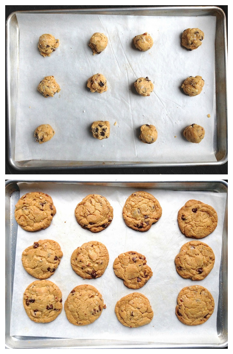 Scoop the dough in 2 tablespoon-sized balls onto the prepared baking sheets. A tablespoon cookie scoop, slightly heaped, is your tool of choice here. If you have a scale, each cookie will weigh about 1 ounce (28g).
