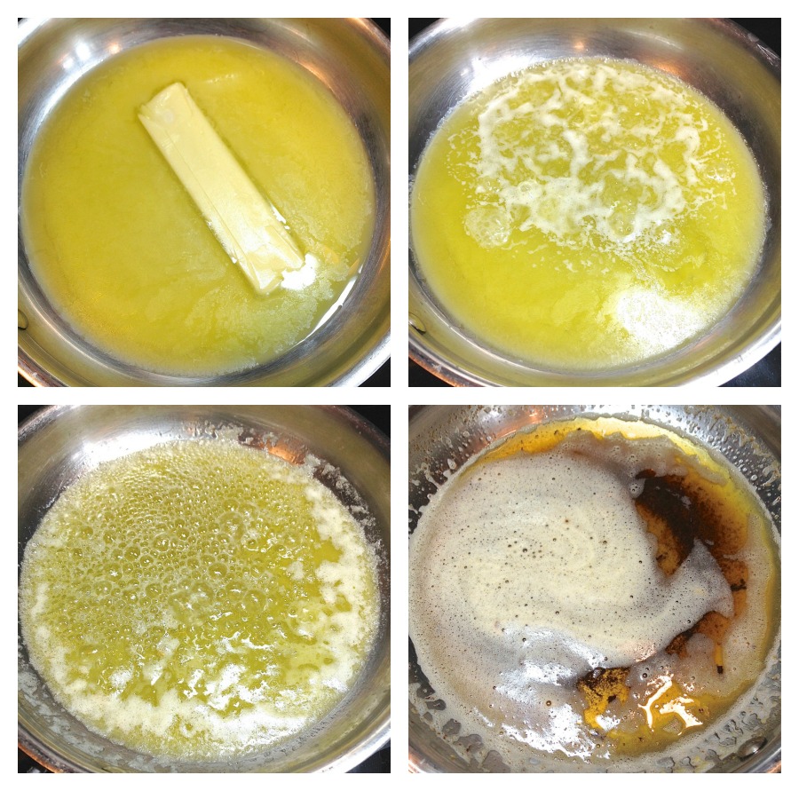 Once the crackling stops, keep a close eye on the melted butter, continuing to swirl the pan at intervals. The butter will become fragrant, and brown bits will form in the bottom.