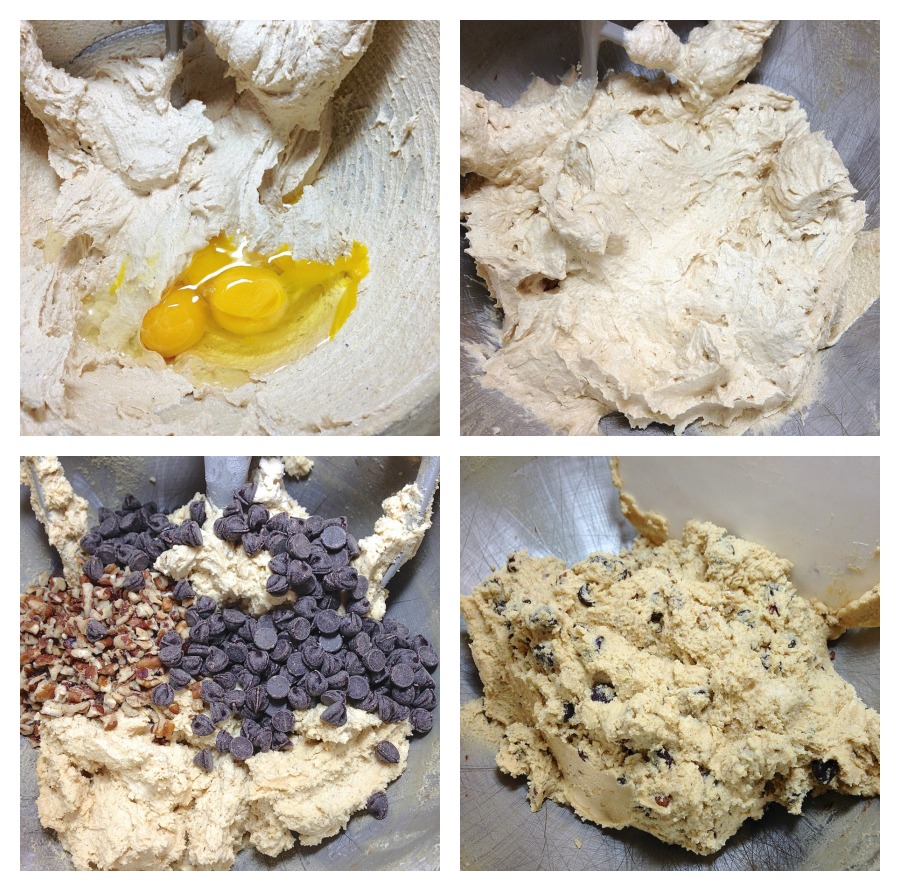 Use a spatula to fold in 1 cup (170g) bittersweet chocolate chips and 1/2 cup (57g) coarsely chopped pecans. Make sure to scrape the bottom and sides of the bowl, and incorporate any sticky stuff into the dough.
