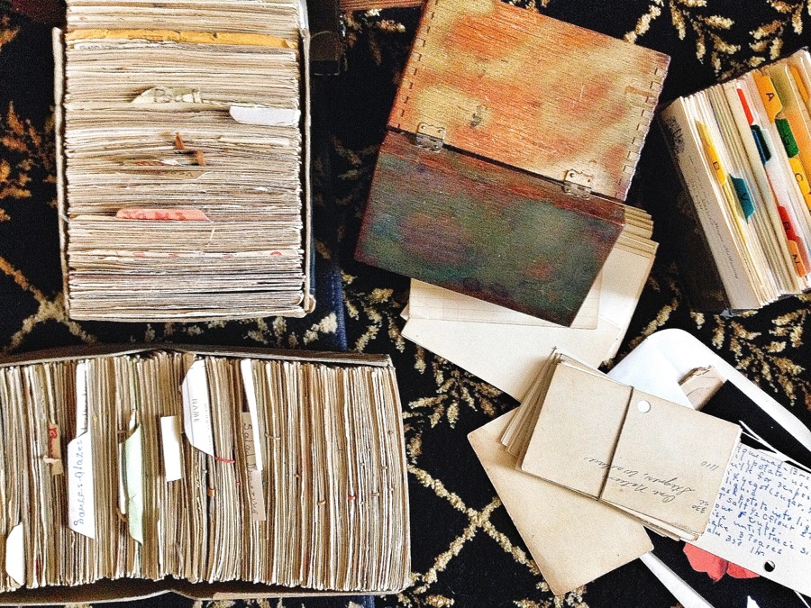 The recipe boxes... (And yes, I did knock one of the boxes on the floor while reaching for another, and its contents splayed out on the carpet like a deck of cards. Some things just can't be staged.)