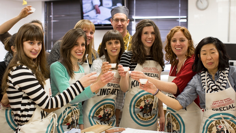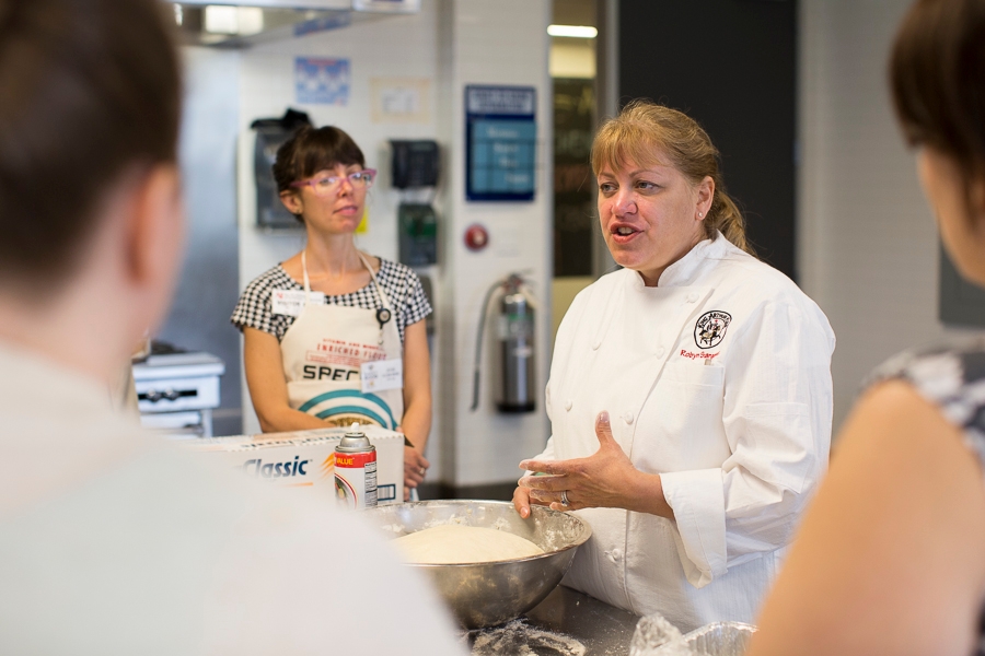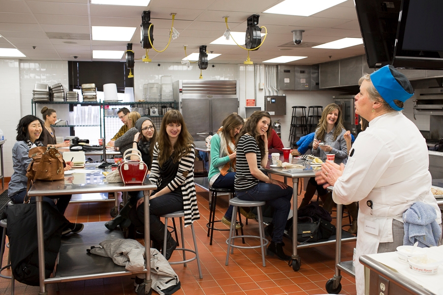 Chef Susan Reid gives a rousing introduction to our Bake for Good Minneapolis participants at the Art Institute Minneapolis – all of our Minnesota bloggers braved a late-spring snowstorm to be with us.