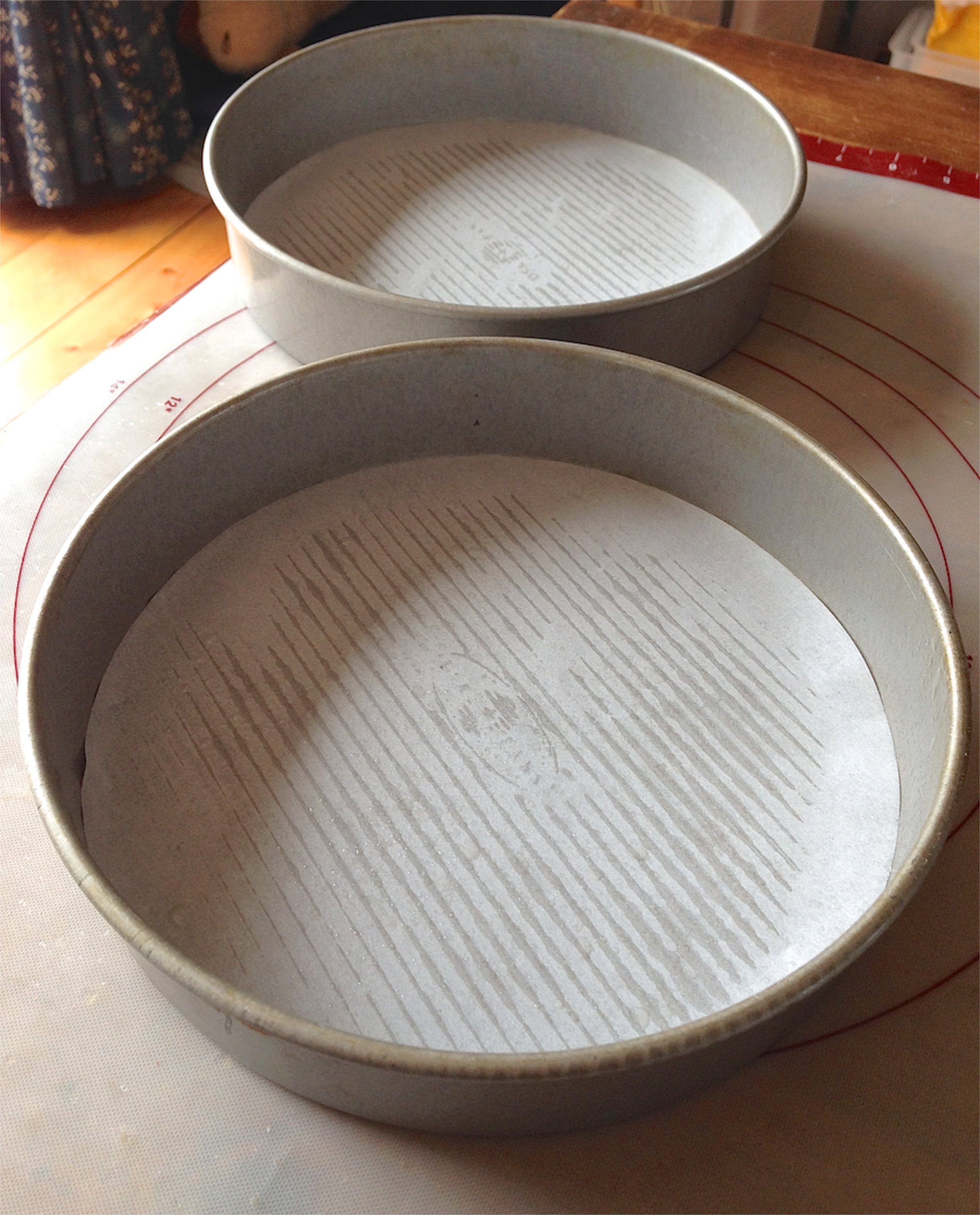 Notice I've greased the pan, then lined it with parchment, then greased the parchment. Why hold your breath when turning your cake out onto a cooling rack, hoping it'll pop out of the pan intact? Parchment guarantees a crumble-free cake.