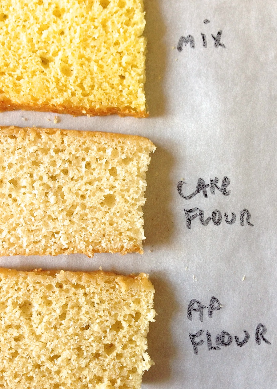 In fact, I did a taste test over Easter, using my extended family as the judging panel. No one chose the boxed cake mix cake as their favorite; and while a couple did prefer the cake made with all-purpose flour, the majority picked the cake made with cake flour.