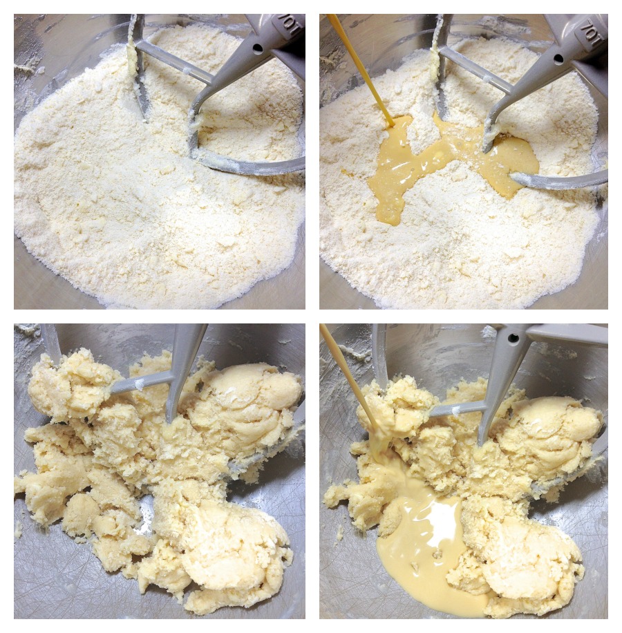 Mix at low speed until the mixture is crumbly. Mix longer than you would for pie crust; you don't want a lot of big chunks of butter remaining.