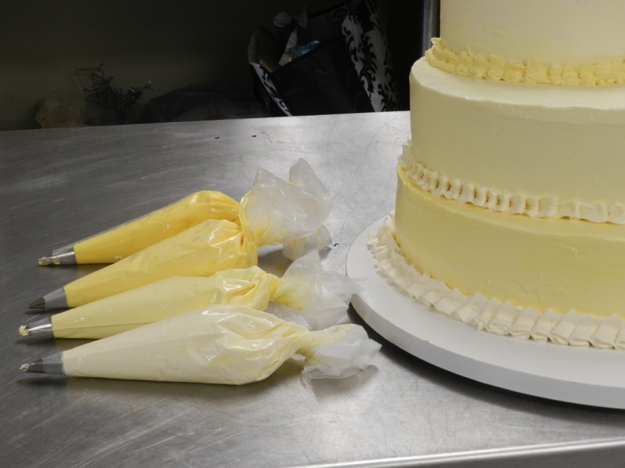Give yourself twice as much time as you think it will take. If you add up my estimates for simply getting the cake made and nominally frosted, we're talking between 2 and 3 hours per tier. Not to scare you, but we're up to 8 to 12 hours already. Add to that the time it takes to buy your ingredients, gather your materials, hoe out the refrigerator, buy flowers if you're using them, and make a ton of frosting. We haven't said a word about decorating anything yet, either. This is not something you can leave for the last minute.