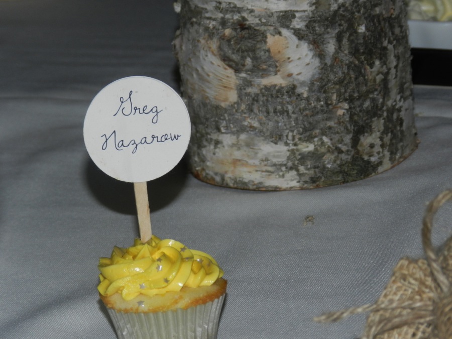 For Gwen's wedding, I also made cupcake seating card holders in their flavors and colors.There was a little bit of extra setup time for that, too, putting everyone's name card in place.