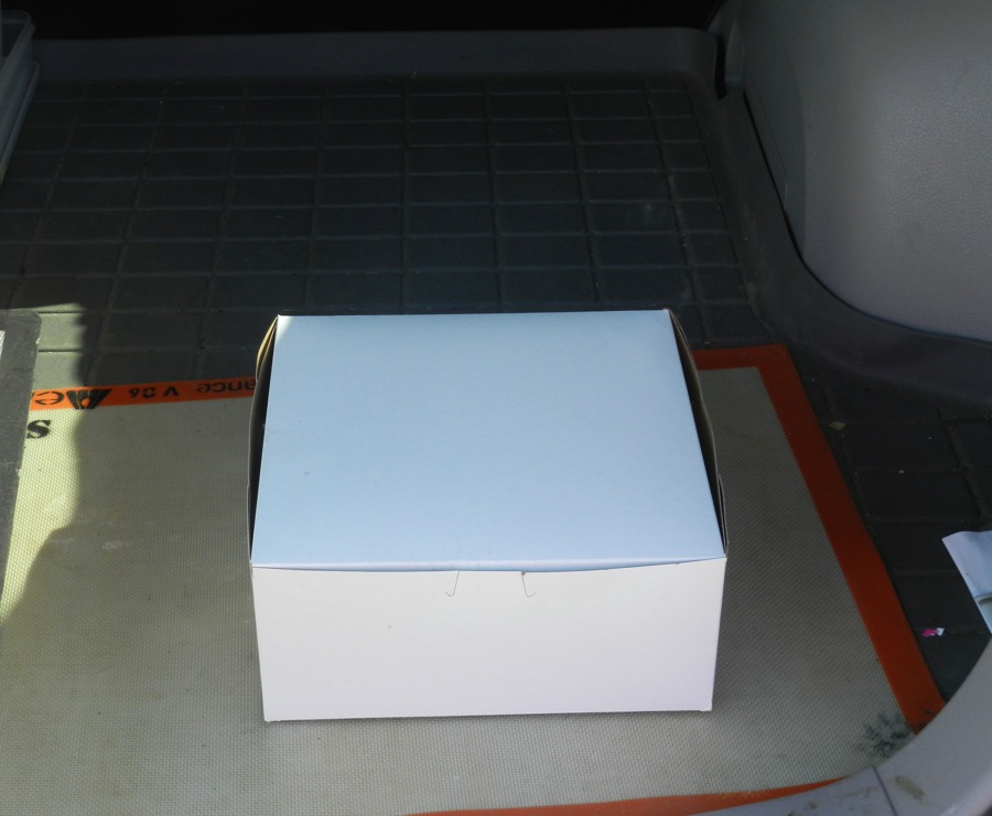 One last, important thing: our rolling mats and/or Silpats have a hidden talent. If you put them on a flat surface and put any kind of cake box on top, the cake box DOES NOT MOVE. It's amazing and wonderful and lets you turn both left and right, and go up and down hills without fear of anything sliding around.