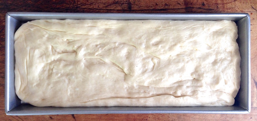 You know, in retrospect, I should have worked a bit harder smoothing the dough's surface before patting it into the pan. Those ridges will translate into lumpy buns. Thankfully, the top becomes the bottom and the bumps won't show much, but still... lazy me!