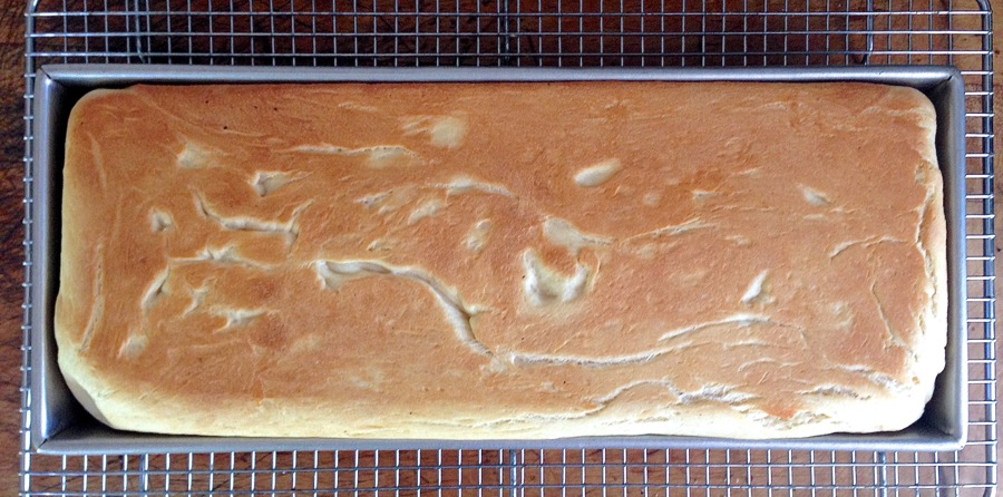 Notice how the bread has risen beyond the lip of the pan? I used a 4-pound skillet, but that yeast is strong stuff. Next time I'll be sure to use a heavier pan – or a couple of bricks!