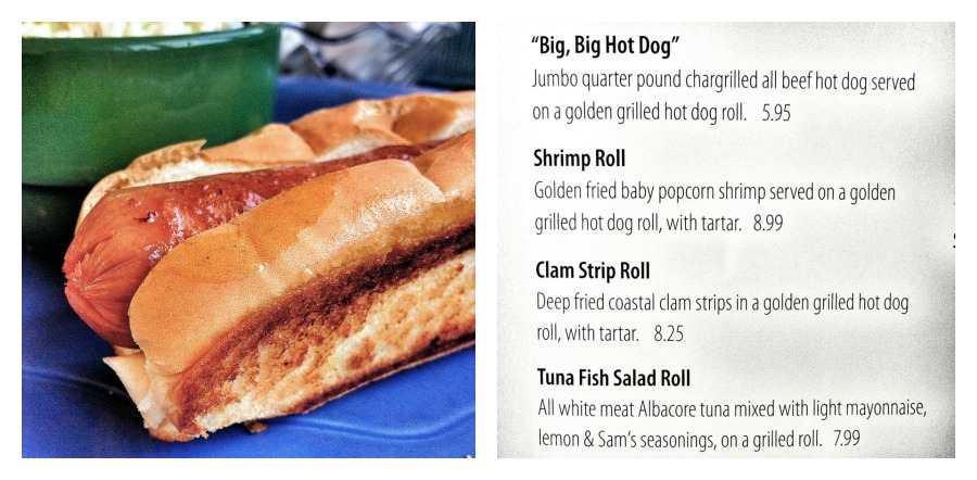 "Grilled in butter frankfort in a toasted roll." And a "CLAMboree." How's that, HoJo?