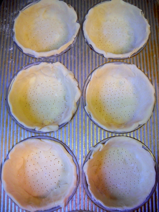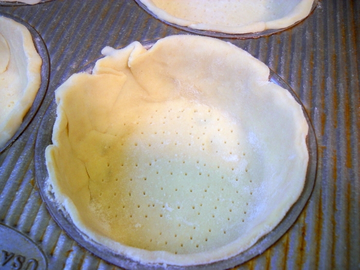 Place one round into each greased well of this wonderfully versatile pan. Prick all over with a small fork, and place the whole pan, lightly covered with plastic wrap, into the freezer for about 15 minutes.