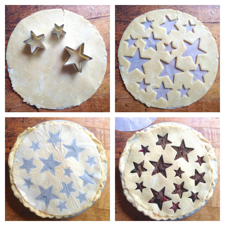 Want to go the extra mile? Press some of the cutouts around the edge of the crust. I made some of these small stars out of the larger stars and trimmings.