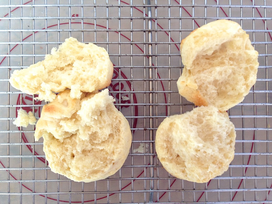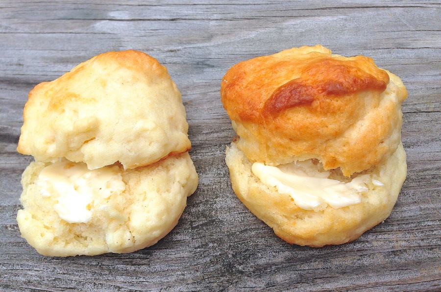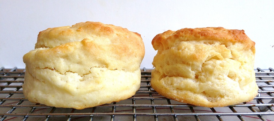 Bakewell Cream Biscuits (right) brown better than Never-Fail Biscuits (left).