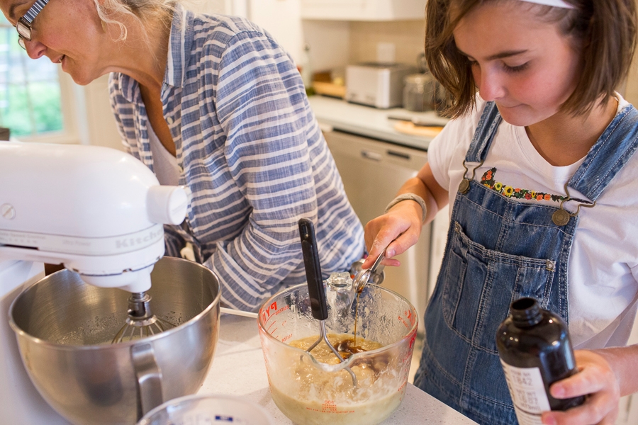 Having worked here for nearly 10 years – and being responsible for marketing – we’ve been wanting our readers and customers to have a better idea of who we are at King Arthur Flour, this employee-owned company filled with lots of bakers. So I decided to bake my “famous” banana bread with my daughter, Lily.