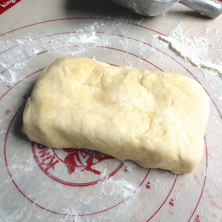 Flip the dough over, give it a 90° turn on your work surface, and roll/pat it into an 8" x 10" rectangle again. As you can see from the finger marks, I didn't even bother to get my rolling pin out for this one.
