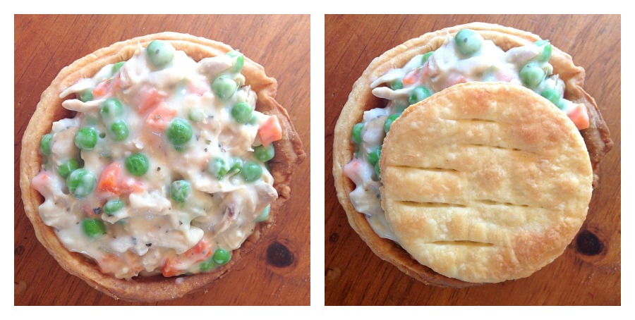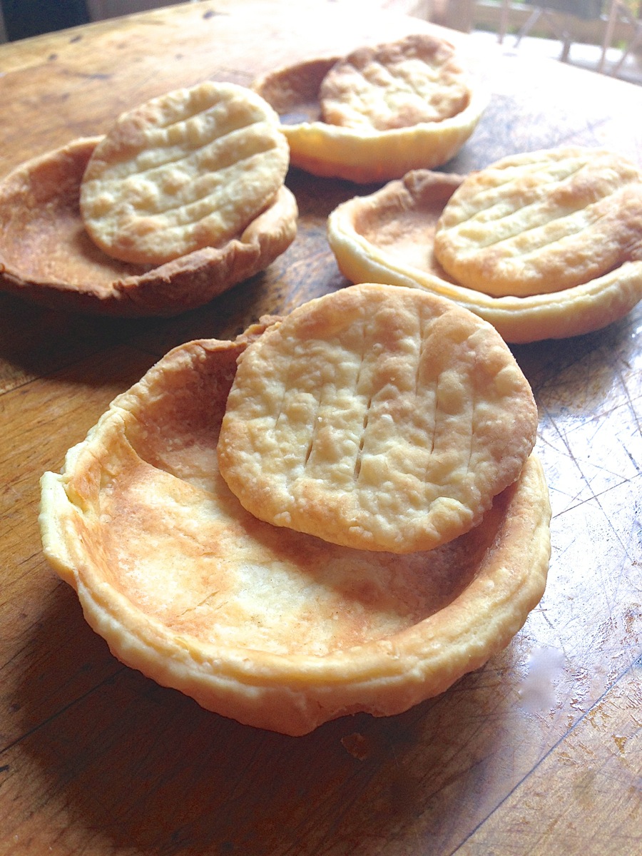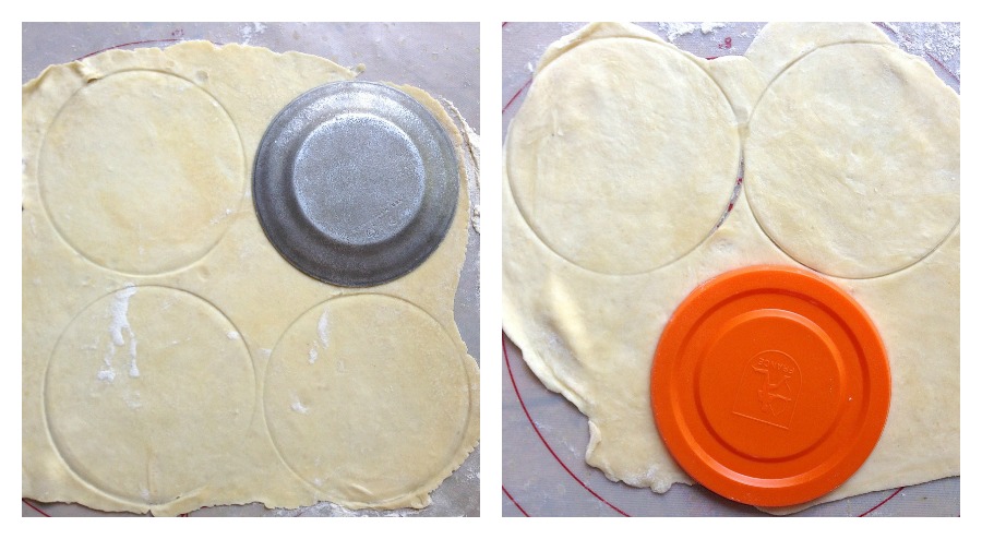 Then I re-rolled the scraps and, using a slightly smaller plastic lid, made "caps" for the pastry shells.