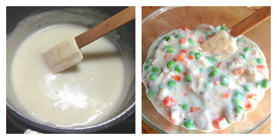 Next, the chicken filling. Feel free to use your own favorite chicken pot pie filling, but if you don't have a recipe you love, try this:
