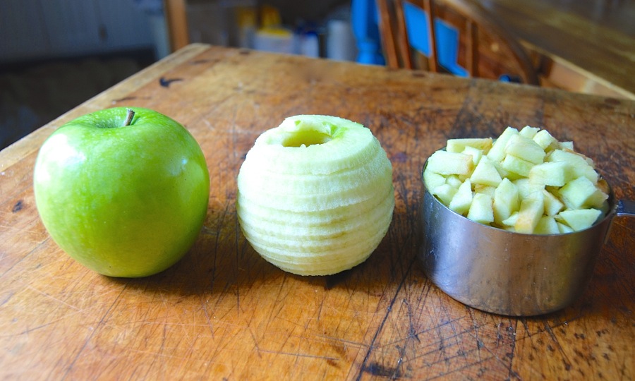But what if you have a bagful of apples, the result of your apple-picking expedition to the orchard, and want to prepare the equivalent of "3 pounds apples, peeled, cored and sliced" – without a scale?